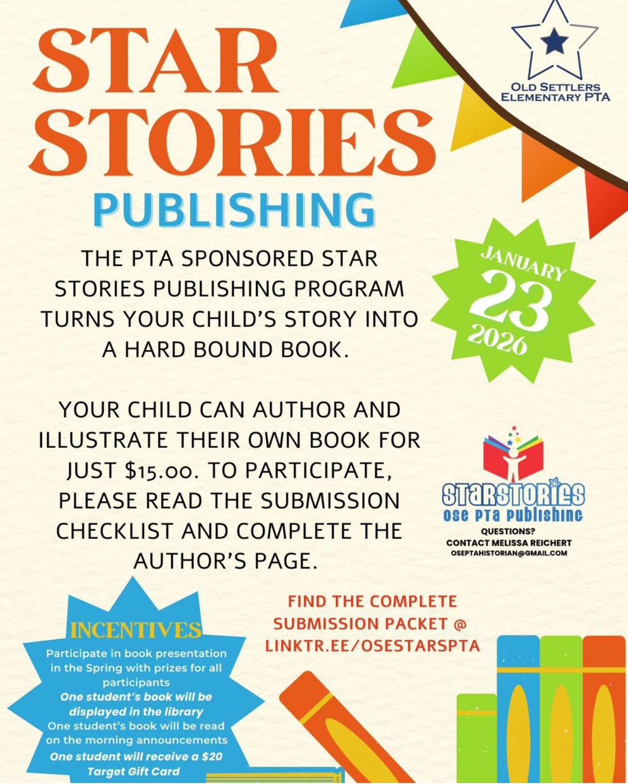 The STAR Stories Publishing Company is a PTA sponsored program that takes your child’s original story and turns it into a hardbound book for $15.